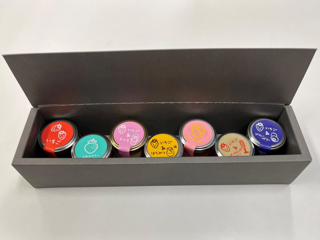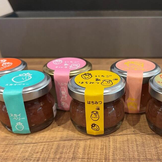 いちごジャム:いちご、砂糖、レモン果汁 スカイベリージャム:いちご(スカイベリー)、砂糖、レモン果汁 いちご&はちみつジャム:いちご、はちみつ、レモン果汁 いちご&ブルーベリージャム:いちご、ブルーベリー、砂糖、レモン果汁 いちご&ミルクジャム:いちご、ミルク、生クリーム、砂糖 いちご&スパークリングワインジャム:いちご、スパークリングワイン、砂糖、レモン果汁 苺バター:いちご、砂糖、バター(乳成分を含む) |